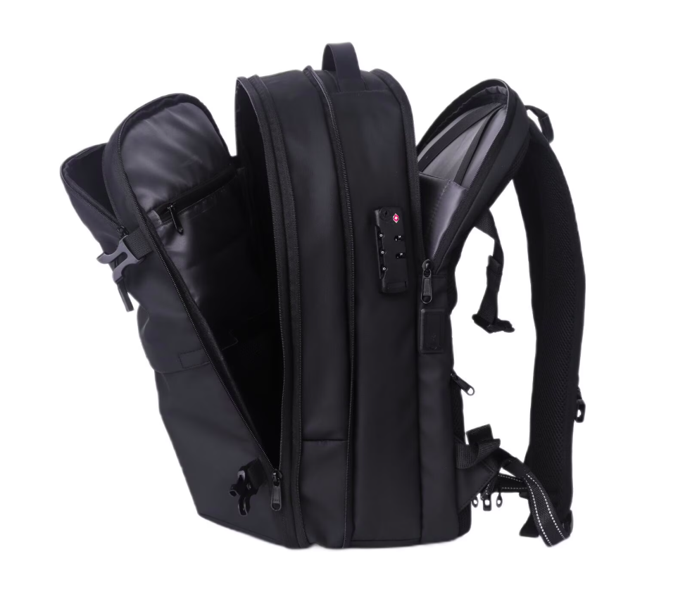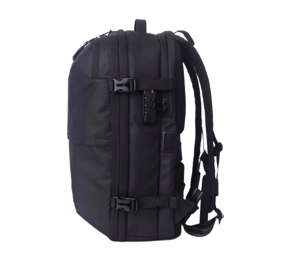 Lemontti Rucsac Smart Premium cu Vacuum si pompa vid 5 capete inclusa, 30-60L pentru cabina avion, impermeabil, doua mufe incarcare USB: USB-A si Type-C, extensie suplimentara, sistem antifurt, Negru
